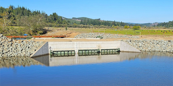 New tidegate designs restore hydrologic connectivity and reestablish fully functional fish passage. A Private Forest Accord grant was awarded to the Coquille Watershed Association and matched with other funds to replace the degraded tidegate with the new design, remove noxious weeds within riparian areas, plant native riparian and replace a degraded farm access bridge downstream.