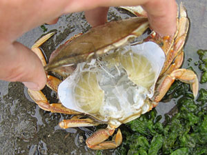 | Female Dungeness crab carrying eggs |
