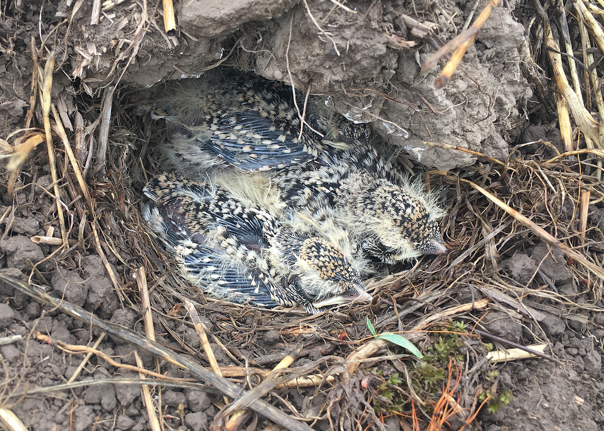 Three eggs were laid in early June with chicks hatching in mid-July. Biologists banded the chicks which fledged their nest successfully, a significant milestone as these ground nesting birds often succumb to predators and crop harvesting. Streaked horned larks are federally listed as Threatened and are an Oregon Conservation Strategy Species in the Willamette Valley.