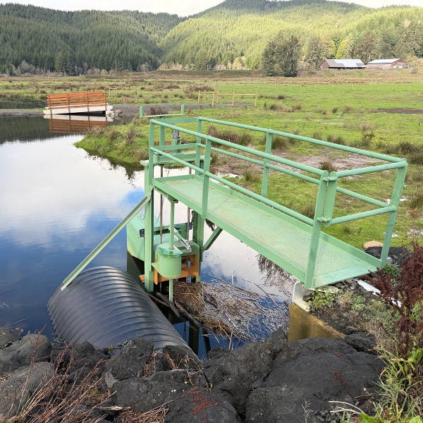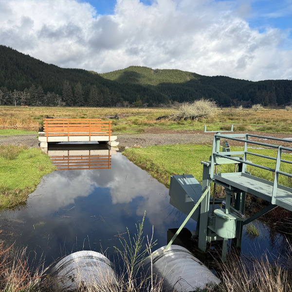 The Smith/Umpqua Estuary Restoration was a multi-variable project that included tide gate removal, tidal channel restoration, bridge infrastructure replacement, native vegetation planting, and water management planning. The project includes work on the Glover Estuary Enhancement project and Kennedy Slough located off the south side of the lower Smith River, near the confluence with the Umpqua River in Reedsport. Work completed over the past two years at the Glover Estuary Enhancement project included replacing two failing top-hinge tide gates with side-hinge tide gates.