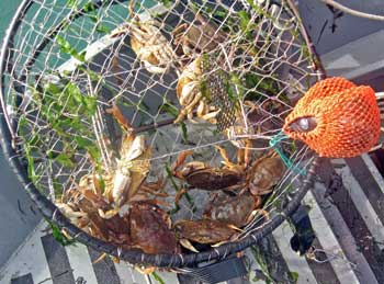 Pre-mating embrace times are synchronous among Dungeness crab, red rock crab go through the same process later in the year (late summer). Since they are eating less during that period, this may partially explain why crabs are often hard to attract to bait during that time. |