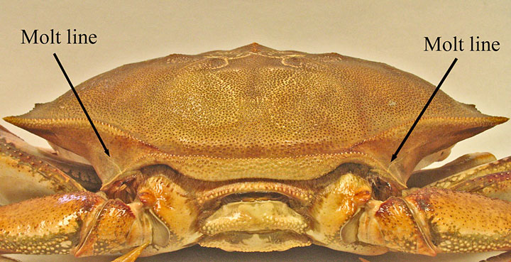 | The molt line on a live crab |