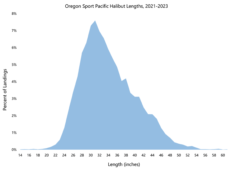 You're in good company. Most (28 percent) of the Pacific halibut landed in the Oregon recreational fishery in 2021-2023 were 30-33 inches.